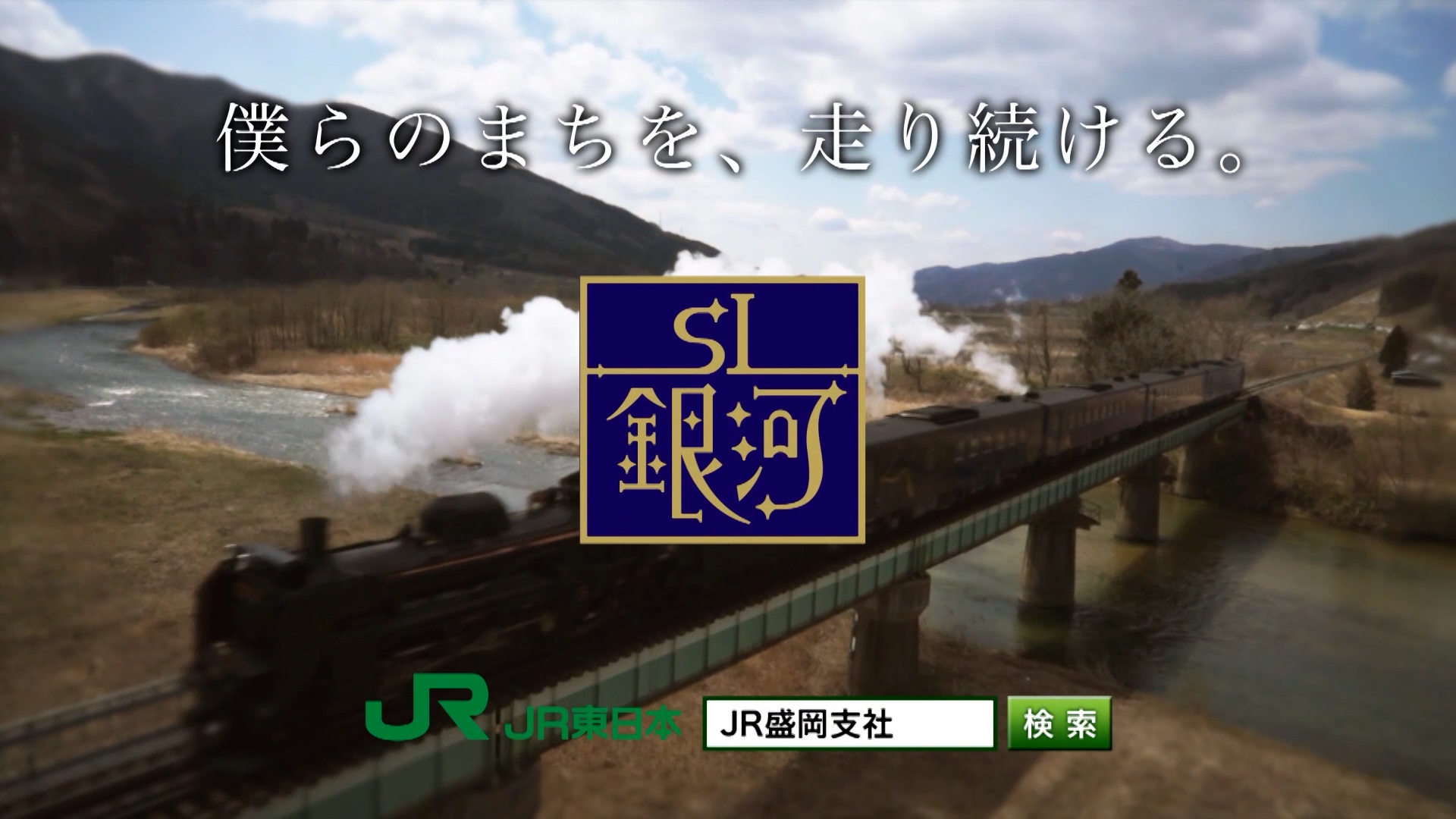 復興と地域活性を担うSL銀河を「僕らのまちを、走りつづける」をテーマに企画・制作。沿線に住んでいる皆さんの笑顔を描写し、列車が地域に届ける希望と誇りを映像で表現しました。