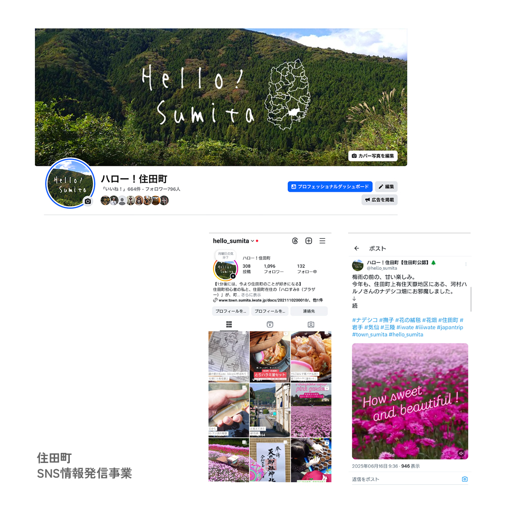 岩手県住田町の魅力をSNSで発信する情報発信事業に携わっています。 観光サイト「いわての旅」の取材・編集で培った経験とノウハウを活かし、企画運営をサポートしています。