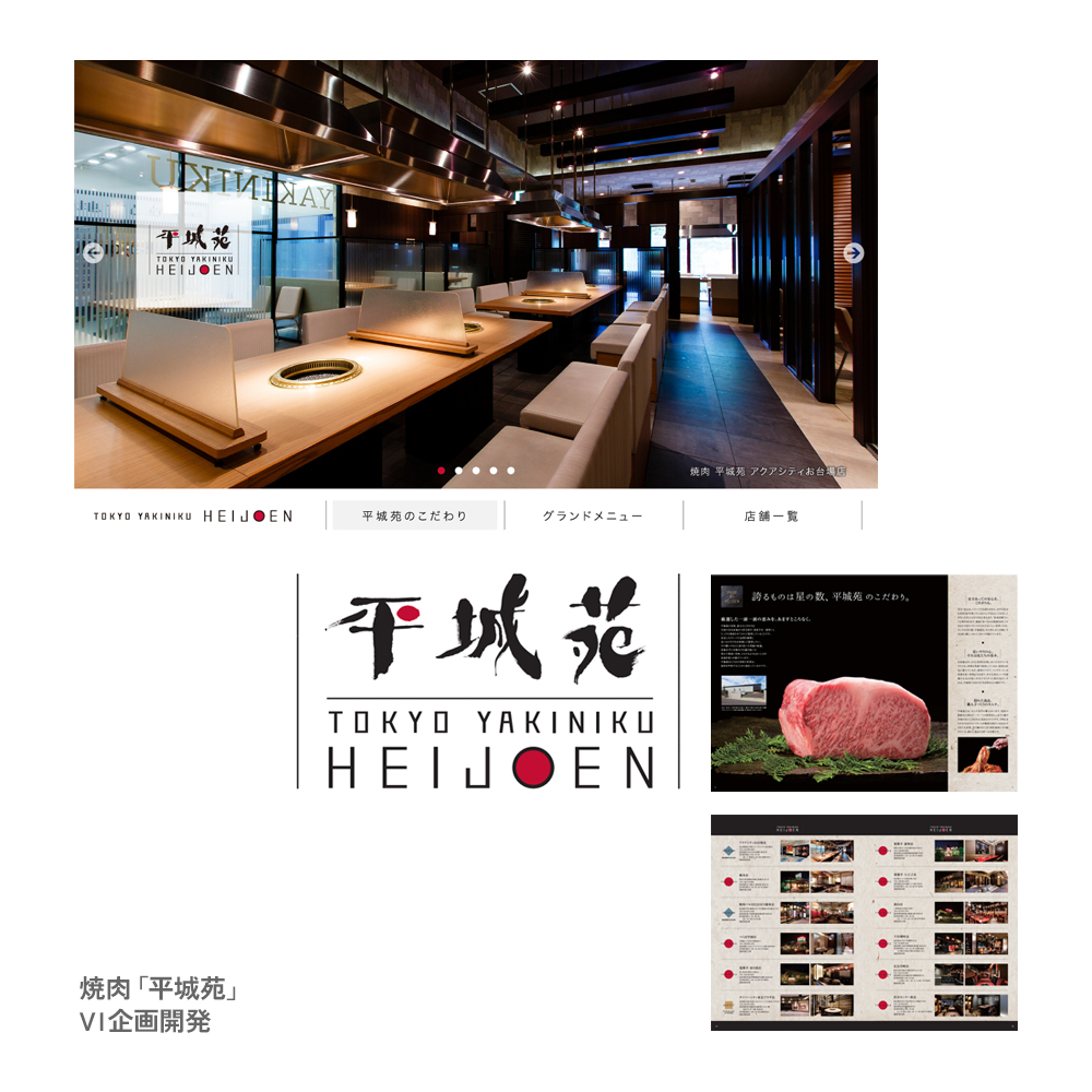 老舗焼肉チェーン「平城苑」のビジュアルアイデンティティ(VI)を一新。 ドリームラボが企画を提案し、インバウンド需要を見据えたグローバル視点で、社内外に向けた統一イメージを構築しました。